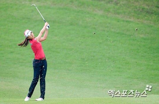 [엑스포츠뉴스=이천, 권혁재 기자] 1일 오전 경기도 이천시 휘닉스스프링스 컨트리클럽(72파/6,496야드)에서 열린 'E1 채리티 오픈(E1 Charity open)' 2라운드 경기, 윤채영(26, 한화)이 11번홀 세컨샷을 하고 있다.
