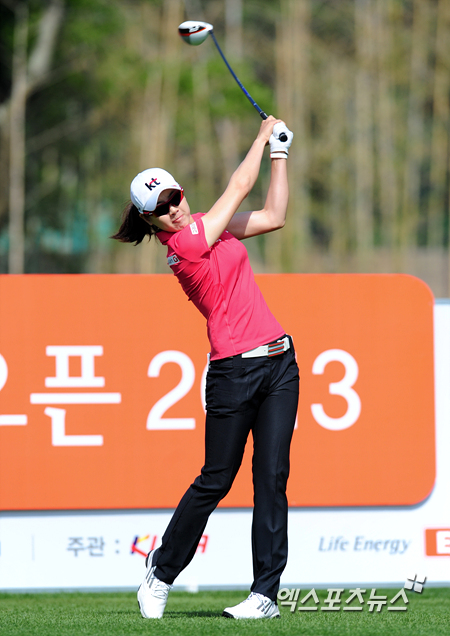 [엑스포츠뉴스=이천, 권혁재 기자] 2일 오전 경기도 이천시 휘닉스스프링스 컨트리클럽(72파/6,496야드)에서 열린 'E1 채리티 오픈(E1 Charity open)' 3라운드 경기, 이정민(21, KT)이 10번홀 티샷을 하고 있다.