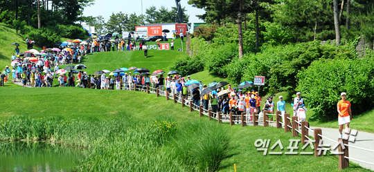 챔피언조 김효주, 김보경, 이정은이 수많은 갤러리들 함께하고 있다.