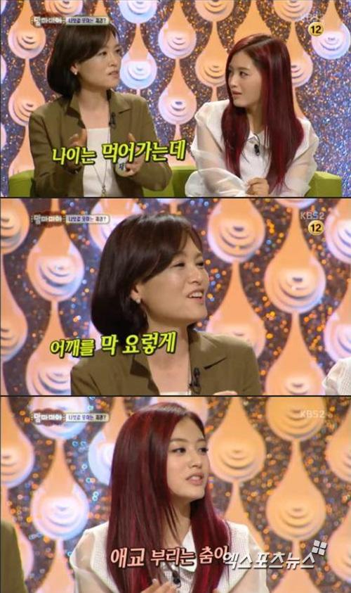 이에 재경의 어머니는 "데뷔 때는 섹시한 콘셉트였다. 나이는 먹어가는데 어깨를 막 요렇게 하니까 오글거렸다"고 돌직구를 날려 딸 재경을 당황케 했다.