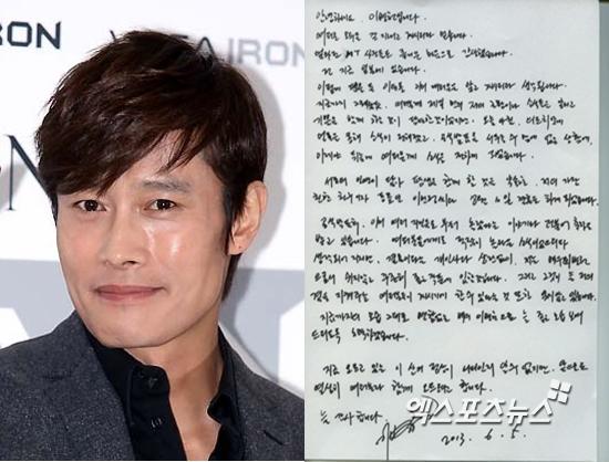 ▲이병헌 자필편지 ⓒ 엑스포츠뉴스 DB, 이병헌 공식사이트