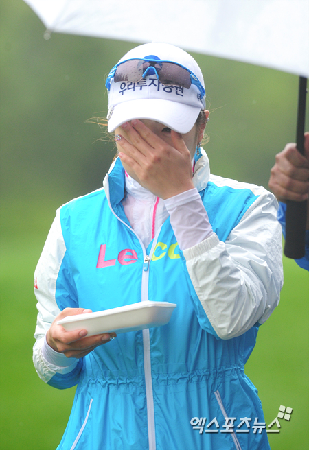 [엑스포츠뉴스=제주, 권혁재 기자] 8일 오전 제주도 서귀포시 롯데스카이힐제주 컨트리클럽(파72/6,288야드)에서 열린 '제 3회 롯데 칸타타 여자오픈'(총상금 5억, 우승상금 1억) 2라운드 경기, 안신애가(23, 우리투자증권)이 4번홀 만두를 먹으며 이동하고 있다.
