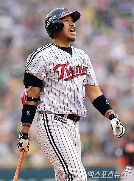[엑스포츠뉴스 = 김성진 기자] 8일 오후 서울 잠실야구장에서 열린 '2013 한국야쿠르트 세븐 프로야구' LG 트윈스와 롯데 자이언츠의 경기에 6회 말 무사 1루 이병규가 헛스윙을 한 후 아쉬워하고 있다.