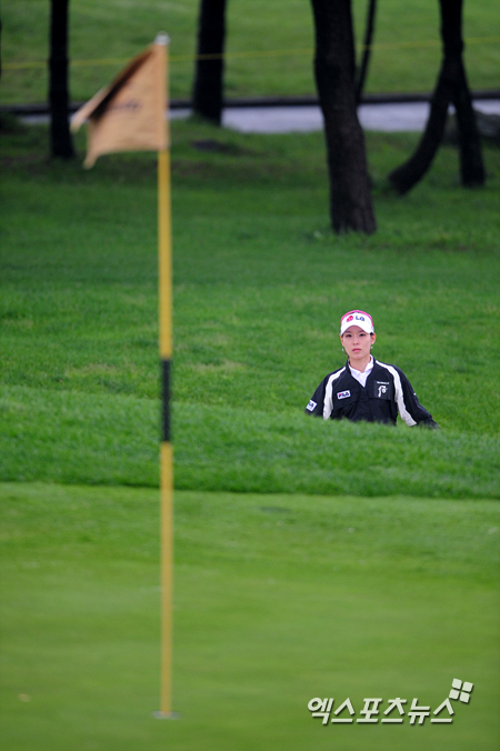 [엑스포츠뉴스=제주, 권혁재 기자] 8일 오전 제주도 서귀포시 롯데스카이힐제주 컨트리클럽(파72/6,288야드)에서 열린 '제 3회 롯데 칸타타 여자오픈'(총상금 5억, 우승상금 1억) 2라운드 경기, 김자영(22, LG)이 10번홀 벙커샷을 위해 그린의 상태를 살피고 있다.