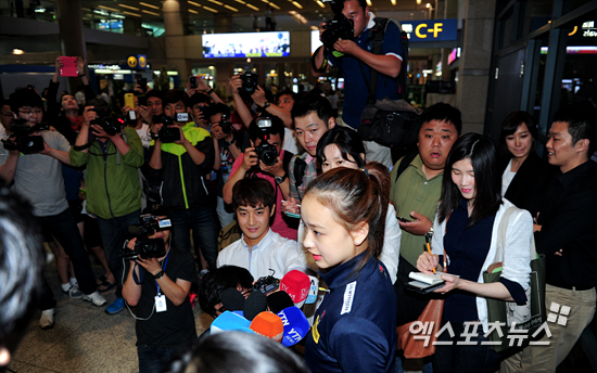 [엑스포츠뉴스=인천공항, 권혁재 기자] 10일 오전 '리듬체조 요정' 손연재(19, 연세대)가 아시아 리듬체조 선수권 3관왕을 차지하고 인천공항을 통해 귀국했다.