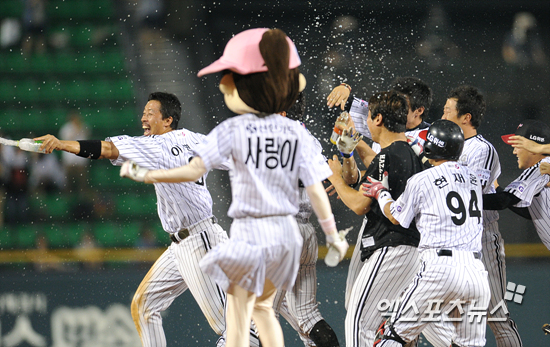 [엑스포츠뉴스=권혁재 기자] 14일 오후 서울 송파구 잠실야구장에서 열린 '2013 한국야쿠르트 세븐 프로야구' LG 트윈스와 넥센 히어로즈의 경기, LG가 9회말 터진 문선재의 끝내기로 4-3 승리를 거뒀다. 반면 넥센은 5연패의 늪에 빠졌다.