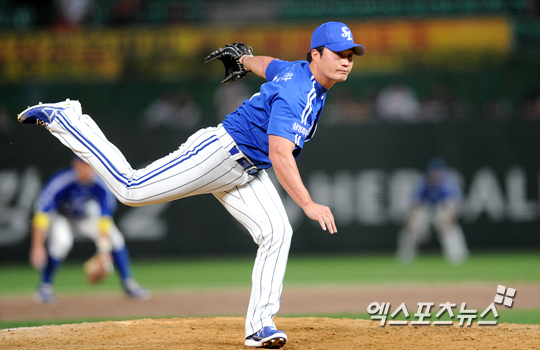 9회말 마운드에 오른 삼성 오승환이 힘차게 공을 던지고 있다.