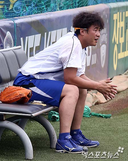 [엑스포츠뉴스 = 대구, 김성진 기자] 21일 오후 대구 시민운동장 야구장에서 열린 '2013 한국야쿠르트 세븐 프로야구' 삼성 라이온즈와 LG 트윈스의 경기에 삼성 안지만이 훈련 후 휴식을 취하고 있다.