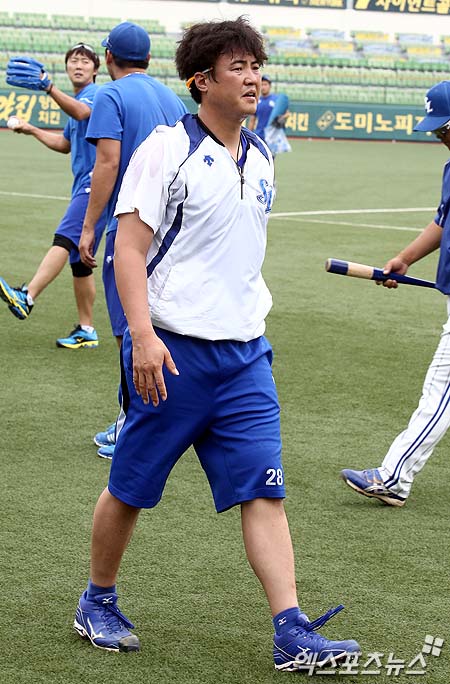[엑스포츠뉴스 = 대구, 김성진 기자] 21일 오후 대구 시민운동장 야구장에서 열린 '2013 한국야쿠르트 세븐 프로야구' 삼성 라이온즈와 LG 트윈스의 경기에 앞서 삼성 안지만이 훈련을 하고 있다.