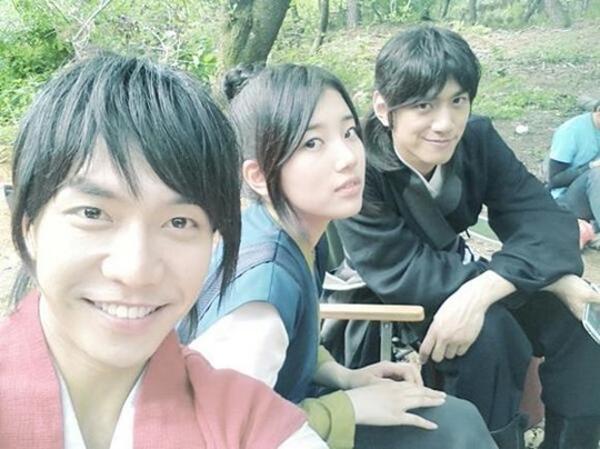 공개된 구가의 서 인증샷 속 수지는 MBC 드라마 '구가의 서'에서 강치 역을 맡은 이승기, 곤 역을 맡은 성준과 함께 카메라를 응시하고 있다.
