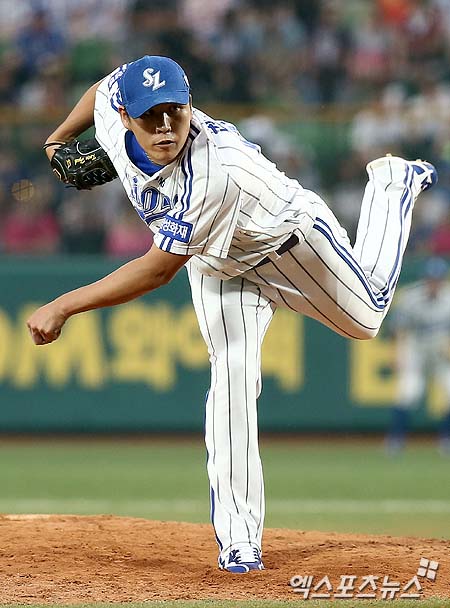 [엑스포츠뉴스 = 대구, 김성진 기자] 22일 오후 대구 시민운동장 야구장에서 열린 '2013 한국야쿠르트 세븐 프로야구' 삼성 라이온즈와 LG 트윈스의 경기에 7회 초 등판한 삼성 두 번째 투수 권혁이 역투를 펼치고 있다.