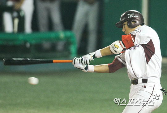[엑스포츠뉴스=권혁재 기자] 27일 오후 서울 목동야구장에서 열린 '한국 아쿠르트 세븐 프로야구' 넥센 히어로즈와 SK 와이번스의 경기, SK가 6-2로 앞선 7회말 1아웃 넥센 강정호가 헛스윙을 하고 있다.