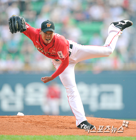 [엑스포츠뉴스=권혁재 기자] 28일 오후 서울 송파구 잠실야구장에서 열린 '2013 한국야쿠르트 세븐 프로야구' LG 트윈스와 SK 와이번스의 경기, SK 선발투수 김광현이 힘차게 공을 던지고 있다.