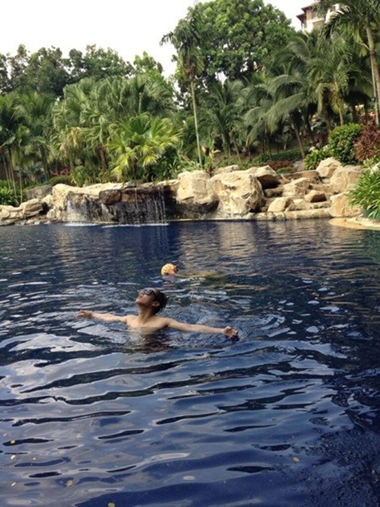 공개된 사진 속에서는 휴가를 떠난 윤두준의 모습이 담겨있다. 사진 속 윤두준은 상반신을 노출한 채 물속에서 즐거운 시간을 보내고 있다.