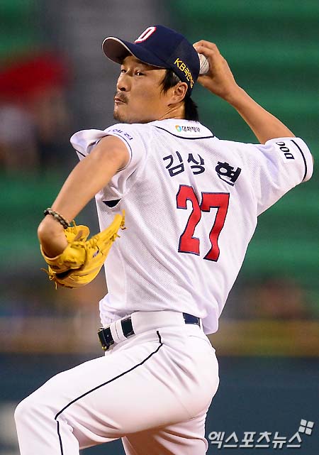 [엑스포츠뉴스 = 김성진 기자] 7일 오후 서울 잠실야구장에서 열린 '2013 한국야쿠르트 세븐 프로야구' 두산 베어스와 삼성 라이온즈의 경기에 두산 두 번째 투수 김상현이 역투를 펼치고 있다.
