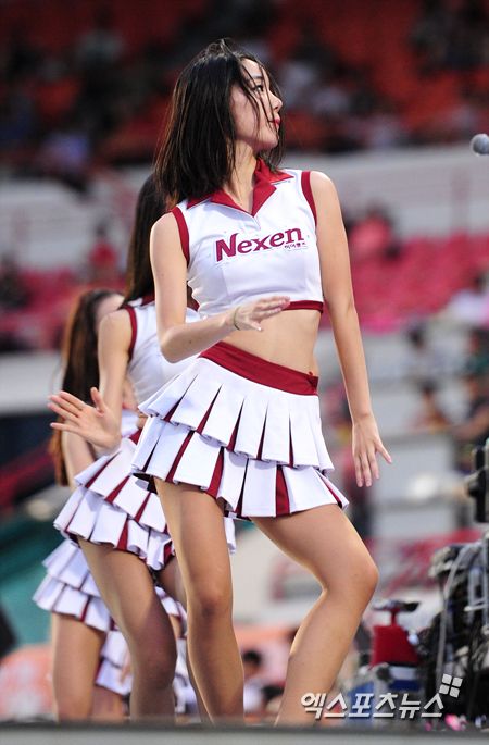 [엑스포츠뉴스=권혁재 기자] 9일 오후 서울 양천구 목동야구장에서 열린 '2013 한국야쿠르트 세븐 프로야구' 롯데 자이언츠와 넥센 히어로즈의 경기, 넥센 치어리더가 섹시한 안무를 선보이고 있다.