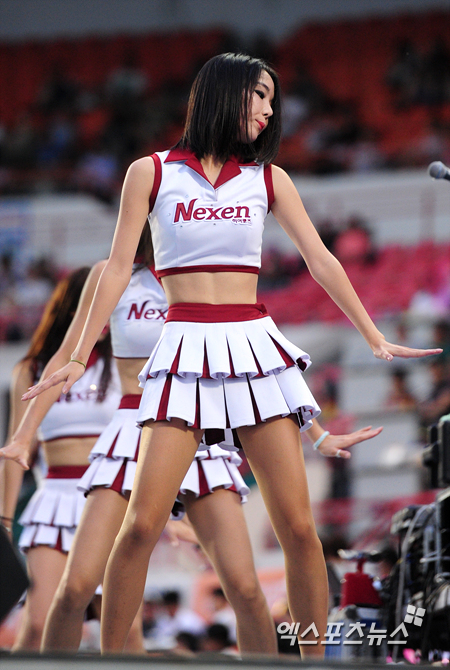 [엑스포츠뉴스=권혁재 기자] 9일 오후 서울 양천구 목동야구장에서 열린 '2013 한국야쿠르트 세븐 프로야구' 롯데 자이언츠와 넥센 히어로즈의 경기, 넥센 치어리더가 섹시한 안무를 선보이고 있다.