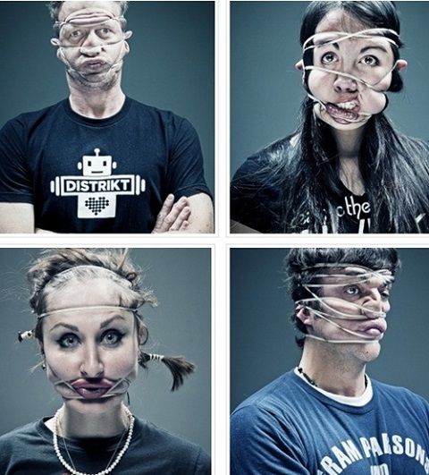 공개된 사진 속에는 사람들이 얼굴에 고무줄을 감고 있는 모습이 담겨 있다. 사진 속 주인공들은 얼굴에 여러 개의 고무줄을 매 얼굴의 형태를 우스꽝스럽게 변형시키고 있다.
