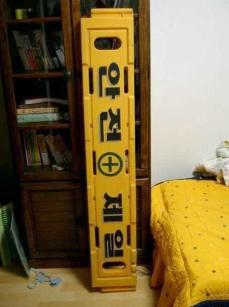 술 먹고 집에 가져온 것, 집에 웬 '안전제일' 표지판이?