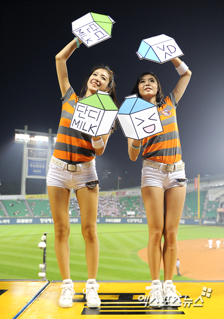 [엑스포츠뉴스=권혁재 기자] 11일 오후 서울 송파구 잠실야구장에서 열린 '2013 한국야쿠르트 세븐 프로야구' NC 다이노스와 LG 트윈스의 경기, NC 치어리더들이 깜찍한 안무를 선보이고 있다.