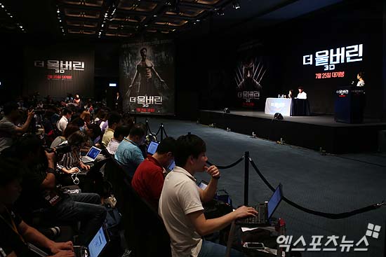 [엑스포츠뉴스 = 김성진 기자] 15일 오전 서울 용산구 한남동 그랜드하얏트 서울 그랜드볼룸에서 열린 영화 ‘더 울버린’ 내한 기자회견에 휴 잭맨(Hugh Jackman)이 취재진의 질문에 답하고 있다.