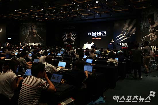 [엑스포츠뉴스 = 김성진 기자] 15일 오전 서울 용산구 한남동 그랜드하얏트 서울 그랜드볼룸에서 열린 영화 ‘더 울버린’ 내한 기자회견에 휴 잭맨(Hugh Jackman)이 취재진의 질문에 답하고 있다.