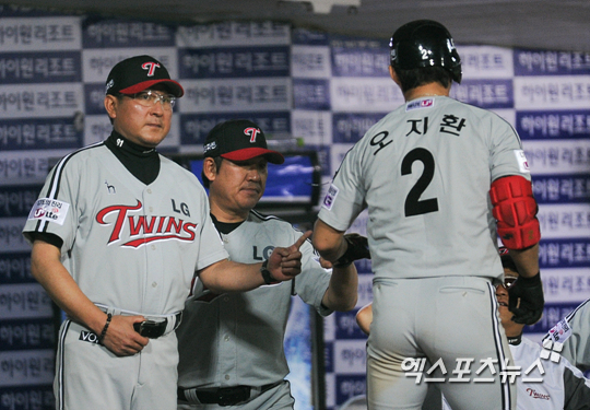 김기태 감독 '(오)지환이 오늘도 넘겼구나'[포토]