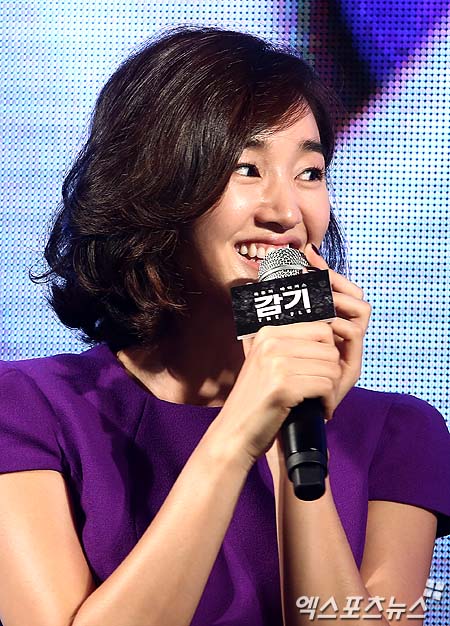 [엑스포츠뉴스 = 김성진 기자] 22일 오후 서울 강남구 논현동 플래툰 쿤스트할레에서 열린 영화 ‘감기’ 뮤직 쇼케이스에 수애가 '그대안의 블루'를 수줍게 부르고 있다.