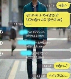 공개한 사진 속에는 단체 채팅방에서 나눈 대화가 담겨 있다. 한 사람이 "학원에서 얘들이 나한테 자꾸 현아 닮았다고 하는데 짜증난다"고 말하자 3명이 아무 대답없이 퇴장한다.