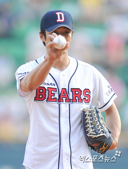 [엑스포츠뉴스=권혁재 기자] 26일 오후 서울 송파구 잠실야구장에서 열린 '2013 한국야쿠르트 세븐 프로야구' LG 트윈스와 두산 베어스의 경기, 배우 지진희가 시구에 앞서 너크볼 그립을 선보이고 있다.