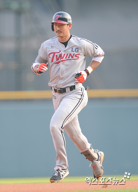 [엑스포츠뉴스=권혁재 기자] 26일 오후 서울 송파구 잠실야구장에서 열린 '2013 한국야쿠르트 세븐 프로야구' LG 트윈스와 두산 베어스의 경기, 1회초 선두타자 LG 박용택이 우월 솔로포를 날리고 그라운드를 달리고 있다.