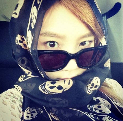 공개한 사진 속에는 스카프로 얼굴을 칭칭 감고 선글라스를 착용한 태연의 모습이 보인다. 완벽한 위장을 마친 후 선글라스를 살짝 내리고 장난스럽게 바라보는 태연의 눈빛이 인상적이다.