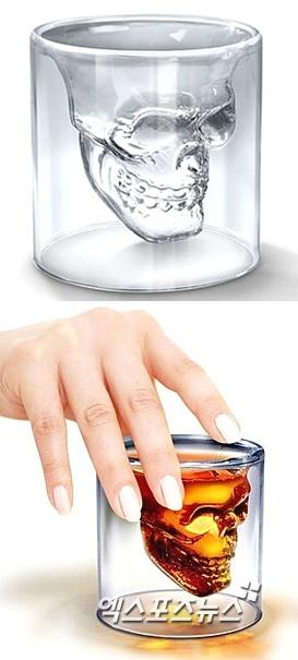 사진 속에는 해골 모양을 본 떠 만든 양주잔의 모습이 담겨 있다.