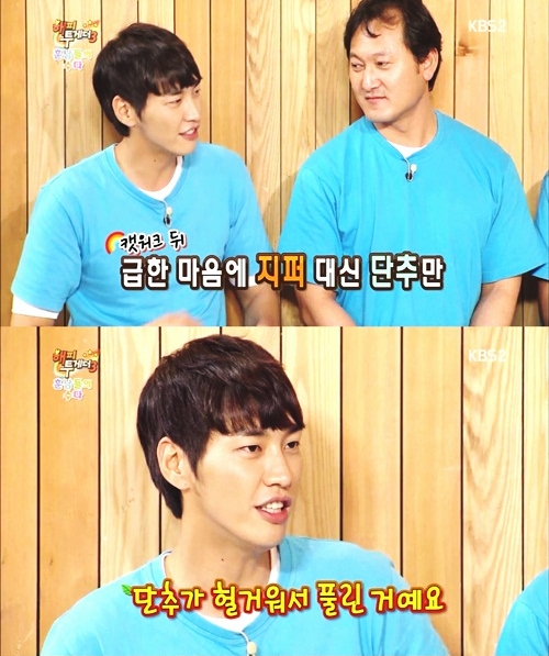 김영광은 "패션쇼에서 옷을 바로바로 갈아입어야 하는데 급한 마음에 지퍼 대신 단추만 잠갔다. 그런데 단추가 헐거워서 풀렸다"고 말했다.