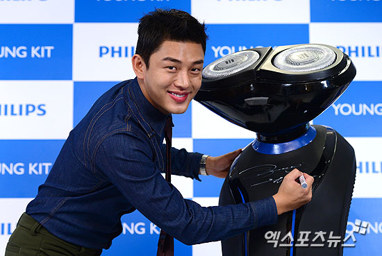 [엑스포츠뉴스 = 권태완 기자] 7일 오후 서울 압구정 현대백화점에서 열린 필립스 영킷(Young Kit) 출시행사에 배우 유아인이 면도기 대형모델에 사인을 하고 있다.