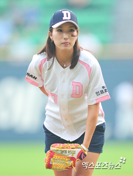 [엑스포츠뉴스=권혁재 기자] 7일 오후 서울 송파구 잠실야구장에서 열린 '2013 한국야쿠르트 세븐 프로야구' 넥센 히어로즈와 두산 베어스의 경기, 지난 7월 KLPGA 투어 금호타이어 여자오픈 우승을 차지한 프로골퍼 김다나가 시구를 하고 있다.