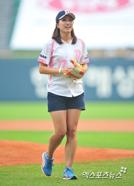 [엑스포츠뉴스=권혁재 기자] 7일 오후 서울 송파구 잠실야구장에서 열린 '2013 한국야쿠르트 세븐 프로야구' 넥센 히어로즈와 두산 베어스의 경기, 지난 7월 KLPGA 투어 금호타이어 여자오픈 우승을 차지한 프로골퍼 김다나가 시구를 하고 있다.