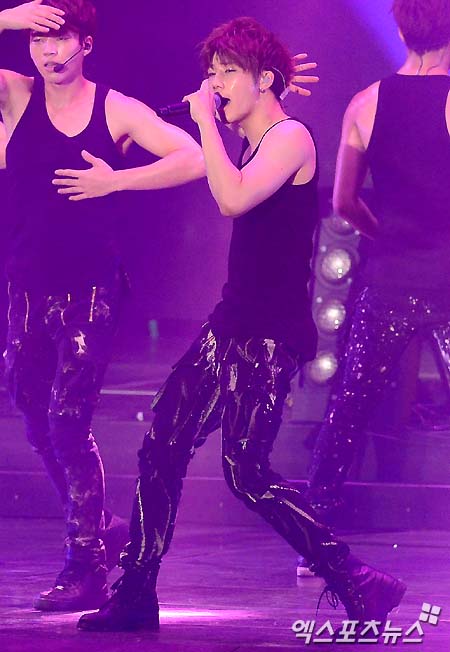 [엑스포츠뉴스 = 김성진 기자] 9일 오후 서울 송파구 방이동 올림픽공원 체조경기장에서 열린 인피니트 첫 월드투어 '2013 인피니트 1st 월드투어 원 그레이트 스텝(One Great Step)'에 인피니트 성규가 공연을 펼치고 있다.