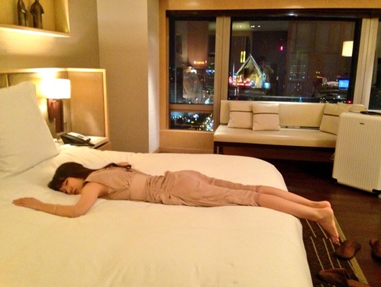 사진 속 이정현은 슬리퍼를 벗어 던진 채 호텔 침대에 대자로 누워 있다. 그는 바쁜 스케줄이 고됐는지 옷도 갈아 입지 않은 채 침대에 뻗어버렸다.