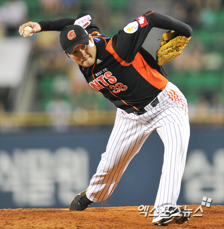 [엑스포츠뉴스=권혁재 기자] 13일 오후 서울 송파구 잠실야구장에서 열린 '2013 한국야쿠르트 세븐 프로야구' 롯데 자이언츠와 두산 베어스의 경기, 2-2 동점이 8회말 마운드에 오른 롯데 정대현이 힘차게 공을 던지고 있다.