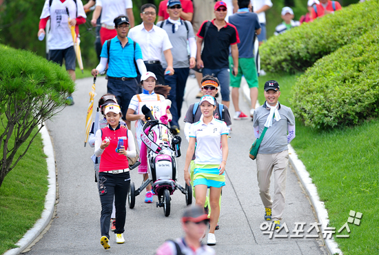 [엑스포츠뉴스=강원도(홍천), 권혁재 기자] 17일 강원도 홍천군 힐드로사이 컨트리클럽(파72. 6684야드)에서 열린 '넵스 마스터피스 2013'(총상금 6억원, 우승상금 1억 2천만원) 3라운드에서 김자영(22, LG)이 수많은 갤러리들과 함께 10번홀로 이동하고 있다.
