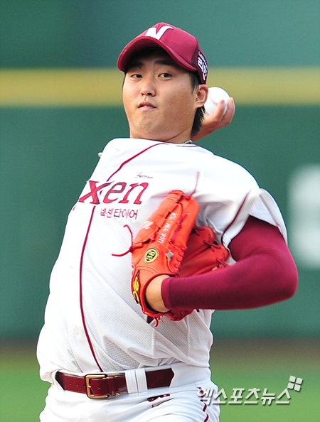 [엑스포츠뉴스=권혁재 기자] 20일 오후 서울 양천구 목동야구장에서 열린 '2013 한국야쿠르트 세븐 프로야구' LG 트윈스와 넥센 히어로즈의 경기, 넥센 선발투수 김영민이 힘차게 공을 던지고 있다.