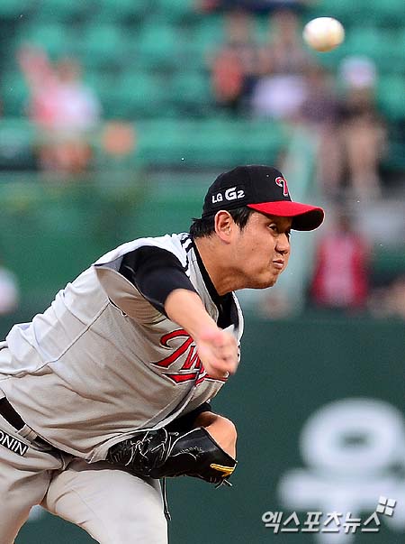 [엑스포츠뉴스 = 인천, 김성진 기자] 23일 오후 인천 문학야구장에서 열린 '2013 한국야쿠르트 세븐 프로야구' SK 와이번스와 LG 트윈스의 경기에 LG 선발 류제국이 역투하고 있다.