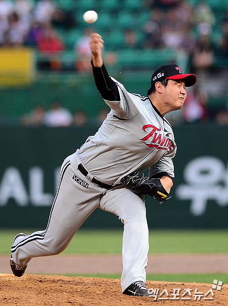 [엑스포츠뉴스 = 인천, 김성진 기자] 23일 오후 인천 문학야구장에서 열린 '2013 한국야쿠르트 세븐 프로야구' SK 와이번스와 LG 트윈스의 경기에 LG 선발 류제국이 역투하고 있다.