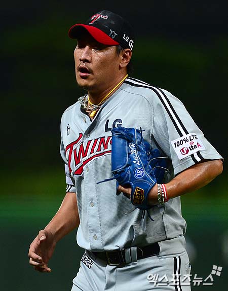 [엑스포츠뉴스 = 인천, 김성진 기자] 23일 오후 인천 문학야구장에서 열린 '2013 한국야쿠르트 세븐 프로야구' SK 와이번스와 LG 트윈스의 경기에 LG 두 번째 투수 이동현이 7회 말 2사 만루 위기에서 최정을 삼진으로 아웃시킨 후 덕아웃으로 향하고 있다.