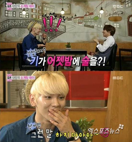 이에 태민은 "소개팅을 앞두고 어젯밤에 긴장해서 술도 마시지 않았느냐"고 폭로를 하며 키를 당황하게 했다.