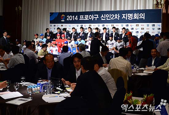 [엑스포츠뉴스 = 김성진 기자] 26일 오후 서울 강남구 역삼동 르네상스 서울호텔에서 열린 ‘2014 프로야구 신인2차 지명회의’에 선수들이 착석하고 있다.