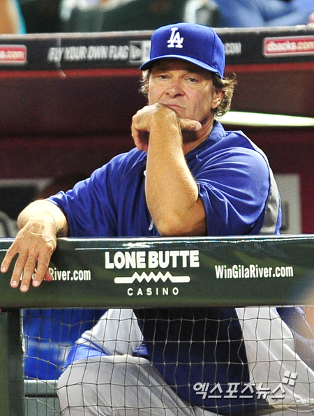 다저스 돈 매팅리(Don Mattingly | Donald Arthur Mattingly) 감독이 마지막 공격 9회초 2아웃이 되자 답답한 표정으로 그라운드를 바라보고 있다.