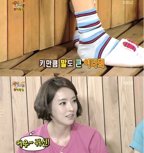 지난 19일 KBS2TV '해피투게더3'에서는 이다희가 자신의 콤플렉스인 키와 발사이즈를 고백했다.