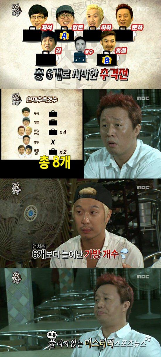 하지만 이내 멤버들은 모조품 가방을 모두 박명수의 것을 빼앗았다는 사실을 기억해 내고 "홍철이가 섞은게 아닐 수도 있다"라고 머리를 맞대기 시작했다.